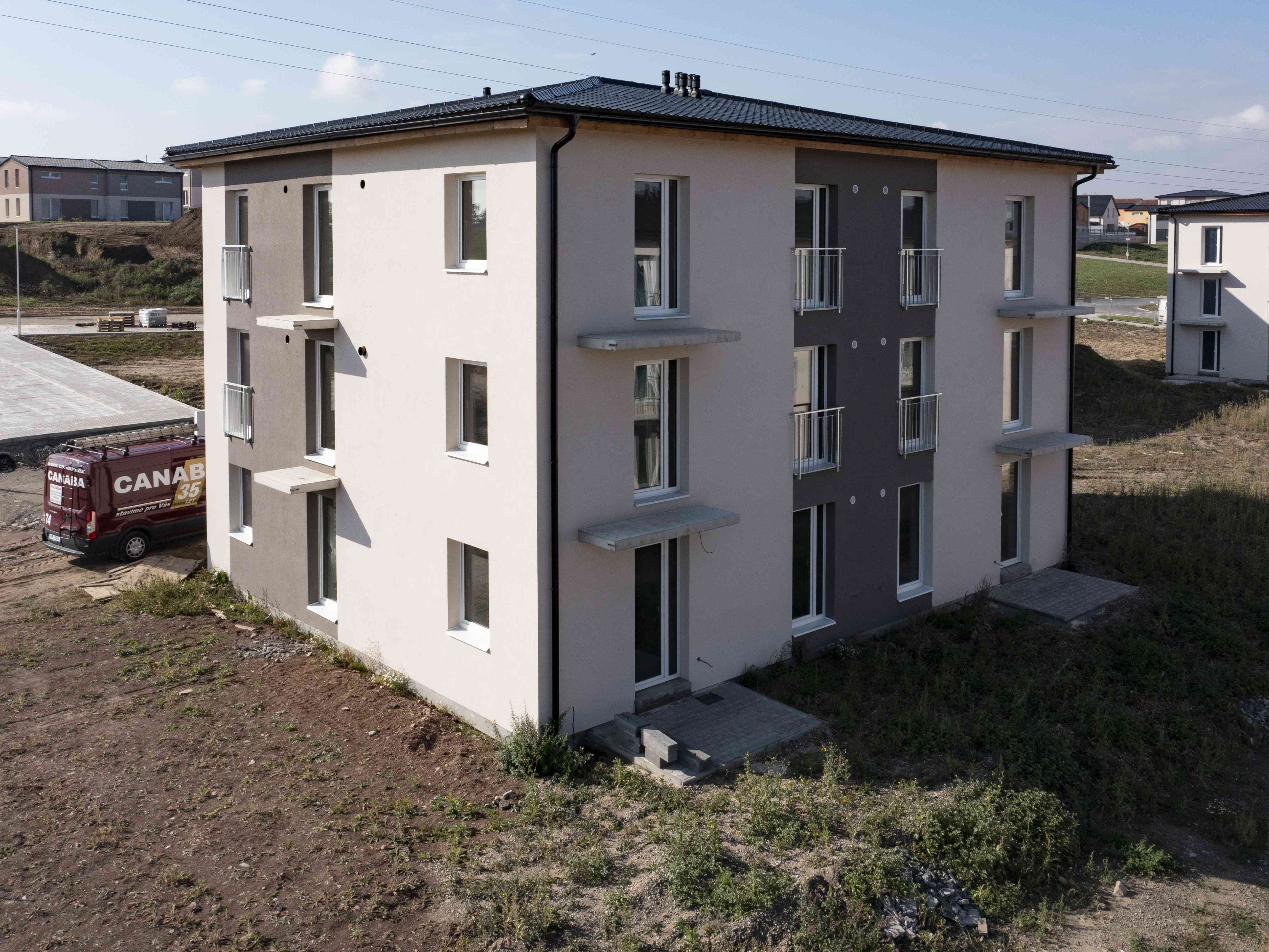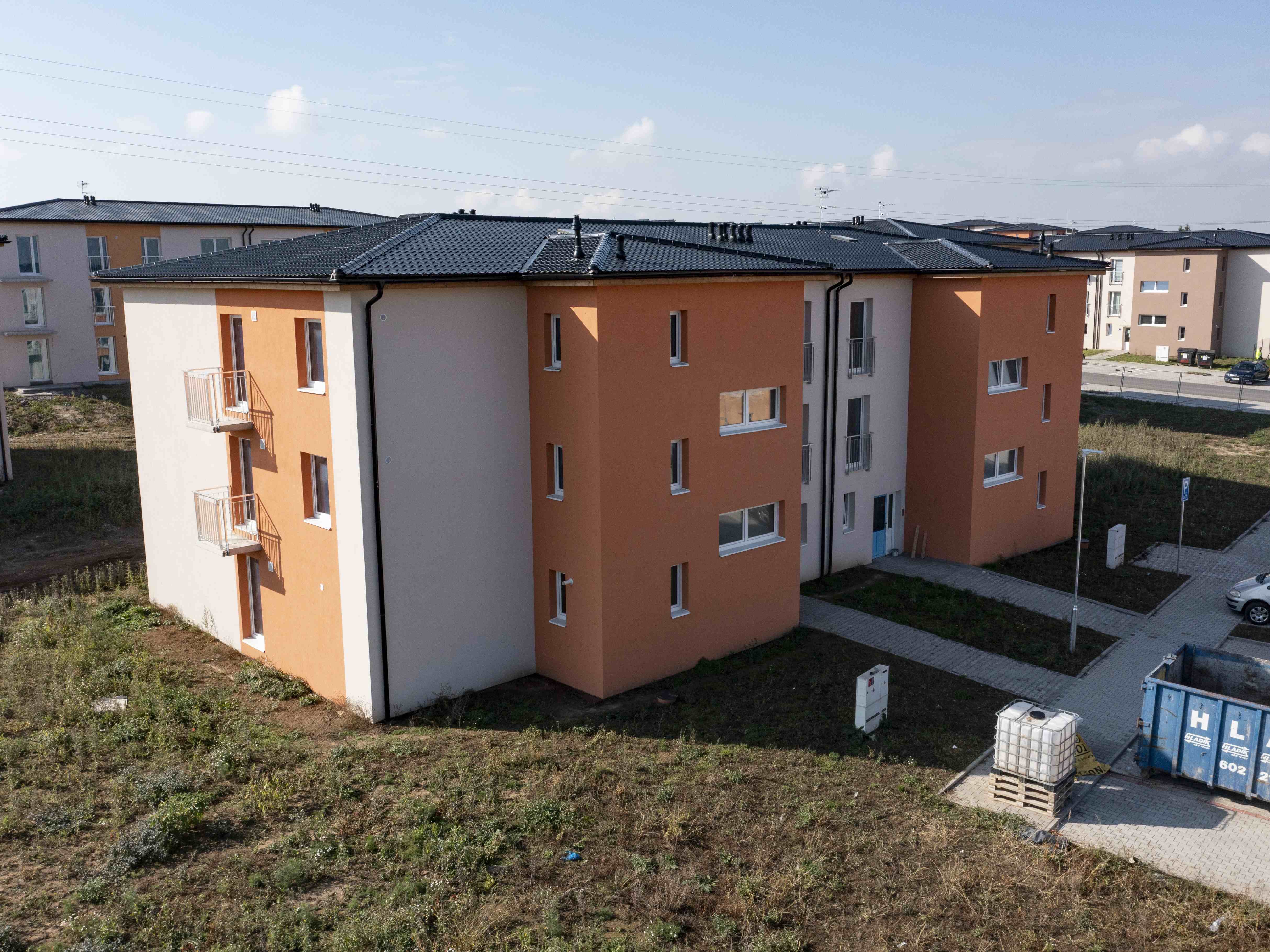 V moderních nízkopodlažních viladomech vznikají promyšlené byty s efektivními dispozicemi 1+kk až 3+kk. Všechny byty disponují balkonem nebo předzahrádkou a ke každému bytu náleží užívací právo ke sklepní kóji a venkovnímu parkovacímu stání.