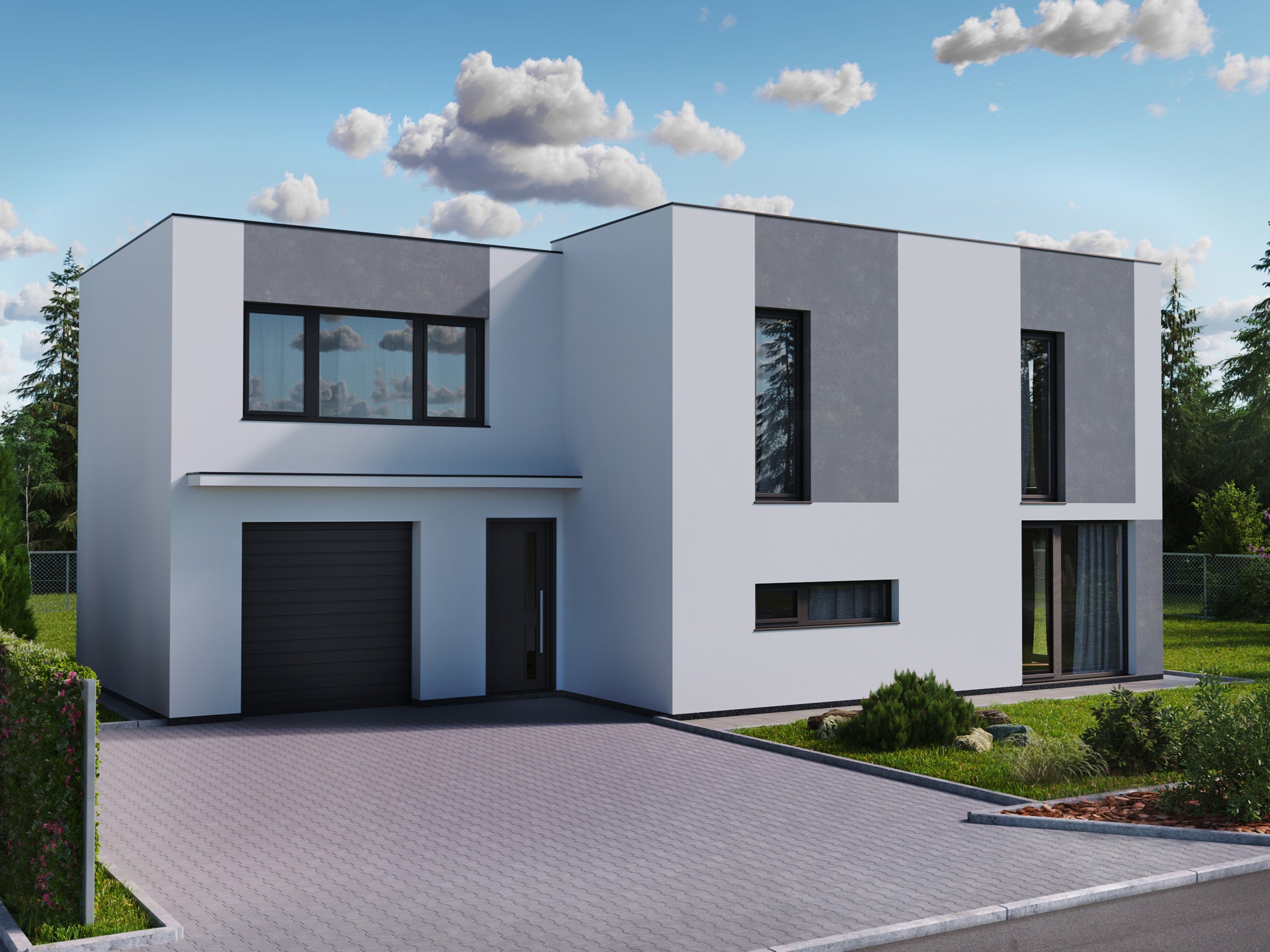 Rodinný dům HARMONIE II představuje ideální spojení moderní architektury s vysokou užitnou hodnotou. Jeho hlavní předností je půdorysné řešení do tvaru L s integrovanou garáží. Dům zaujme čistými liniemi a rovnou střechou, které podtrhují jeho současný vzhled a nadčasový charakter. HARMONIE II nabízí nadstandardní prostor i pro vícečlennou rodinu. Výrazným prvkem je studio nad garáží, které může sloužit jako ateliér, pracovna nebo samostatná bytová jednotka. Poměr ceny a užitné hodnoty zůstává i u této moderní varianty zcela bezkonkurenční.
